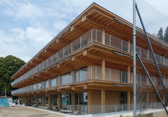 Wer sich bereits bei der Projektdefinition mit der Umwelt befasst, entscheidet sich meist für einen nachhaltigen Holzbau. So ist es auch beim Generationenhaus geschehen. Im Zentrum des dreigeschossigen Gebäudes befindet sich ein Atrium als Begegnungs- und Erschliessungszone. Hier kommen der Caring-Gedanke und die gemeinnützige Community deutlich zum Vorschein. Damit diese Kernzone möglich ist, dienen die umlaufenden Balkone als Erschliessungs- und Begegnungszone. Die Laubengänge dienen im Brandfall als Fluchtweg. Ein Elektrobiologienetz minimiert elektrische Strahlungen in den Wohnungen. Dieses Netz wird in der Gebäudehülle und zwischen den Wohneinheiten verlegt. Die Gebäudehülle ist auch punkto Energie vorbildlich: Das Haus hat Minergie-P-Standard, nutzt Sonnenenergie über Sonnenkollektoren und eine Photovoltaik-Anlage für eine teilweise Selbstversorgung mit Strom und Wärme. Zudem wird in der Architektur auf eine besonders gute Nutzung der passiven Sonnenenergie geachtet.
