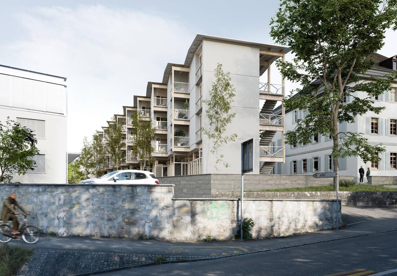 Den Grossteil der Nutzung (ca. 80 Prozent) sollen im Neubau allerdings Mietwohnungen ausmachen. Holz wird, wie bei der Fassade mit den Laubengängen resp. Balkonen, auch im Inneren das dominierende Material sein. Die qualitätsvollen, kompakten Wohnungen mit flexibler Grundrisskonfiguration heben sich von «herkömmlichen» Wohnangeboten ab und sollen eine urbane Bewohnerschaft ansprechen.