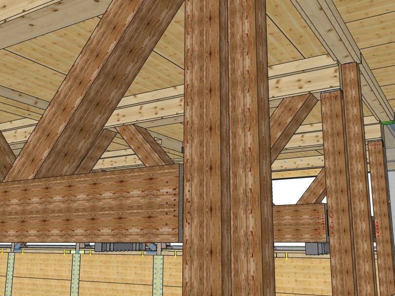 In enger Zusammenarbeit mit den Fachplaner-Teams der neue Holzbau AG, Lungern, Makiol Wiederkehr AG, Beinwil am See sowie der Lignatur AG, Waldstatt waren die Werkplanungs-Teams der Timbatec Holzbauingenieure Schweiz AG im Vorfeld mit Planungsarbeiten beauftragt. Diese beinhaltete die Bauwerksteile fachmännisch mit zu planen (u.a. Klärung und Umsetzung von Anschlussdetails sowie Plausibilitätsprüfungen bezüglich Montierbarkeit). Zusätzlich wurde durch das Konzipieren und Erstellen der Pritschen-Verladepläne eine reibungslose Transportlogistik sichergestellt.