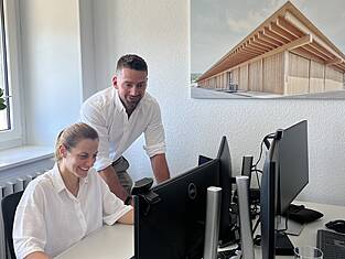 Leiter Simon Vuilleumier und sein Team unterstützen Sie in allen Phasen Ihres Holzbauprojekts: