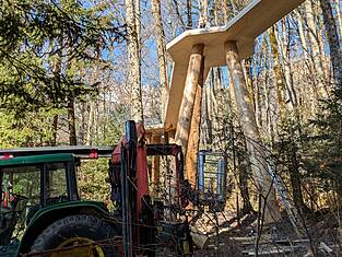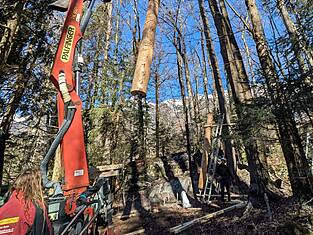 Timbatec Holzbauingenieure Schweiz AG war für das statische Konzept verantwortlich. Die naturbelassenen Fichtenstämme aus dem lokalen Forst dienen als elegante Stützen und sind Teil des Tragwerkkonzepts. Technisch raffiniert verbunden mit den CLT-Plattformen, sorgen gezielte Eingriffe wie Entlastungsschlitze (Gewährleistung der kontrollierten Rissbildung) und ergänzende Stützschrauben für Stabilität und Langlebigkeit.