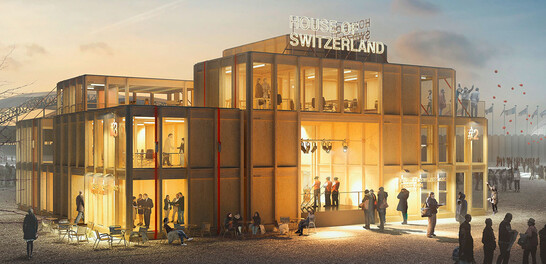 Das Gebäude-Ensemble besteht aus 4 Gebäuden mit bis zu drei Geschossen, deren Gesamtsilhouette die Modernität der aktuellen Schweizer Holzarchitektur evoziert. Damit will «Präsenz Schweiz» der Welt ein Baudokument vor Augen führen, das Tradition mit zeitgenössischer Schweizer Architektur und Design verbindet, gebaut mit dem «einzigen nachwachsenden Rohstoff» der Schweiz – Holz.