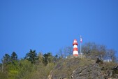 Der neun Meter hohe Leuchtturm besteht fast ausschliesslich aus hölzernen Dreischichtplatten und ist auf den Aussenseiten mit roter und weisser Farbe gestrichen.