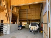 Das Bauprojekt besteht aus einem Ersatzneubau und einem anschliessenden Eventteil. Die Scheune ist bis auf das Betonfundament als Holzkonstruktion geplant. Die Terrainebene dient der Tierhaltung. Die beiden über den Stallungen angeordneten Zwischenböden dienen dazu, Stroh und Heu zu lagern. Das Heulager wird mit einer Unterlüftung ausgerüstet. Zusätzlich befindet sich ein Heukran in der Scheune. Ausserhalb der Scheune sind auf der einen Seite ein Büroraum und auf der anderen ein Boden für die Lagerung von Heuballen an die Binder aufgehängt. Dieser aufgehängte Heuboden auf der Aussenseite der Scheune an die Binder musste genau geplant werden. Die Scheune musste zudem den Anforderungen an einen Heukran gewachsen sein.