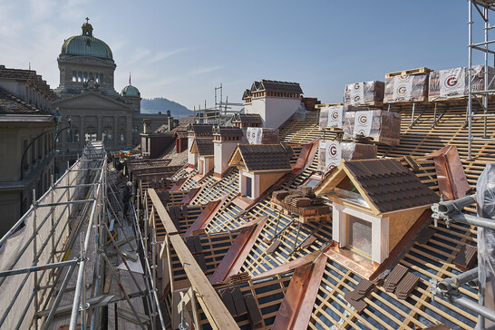Lüftung, Kühlung und Verkabelung müssen untergebracht und statische Anforderungen erfüllt werden, ohne die Gebäude stark zu verändern. «Hightech im Denkmalschutz» war gefragt. Heute nehmen Abfangkonstruktionen, sogenannte Sprengwerke aus Holz, die Kräfte aus den oberen Geschossen auf und leiten diese nach unten ab.