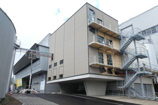 Der Limeco Holzbau zeichnet sich durch seine Einfachheit und Leistungsfähigkeit aus. Die Wände sind aus Brettsperrholzplatten gefertigt, die sichtbar bleiben. Diese bewusst ressourcenschonenden Platten wurden aus Käferholz hergestellt. Die bis zu 12 Tonnen schweren Anlagenteile werden von einer Decke aus horizontalem Brettschichtholz getragen. Das einfache, aber anspruchsvolle Gebäude ist mit einer Aussenhülle aus horizontaler Holzschalung ummantelt.