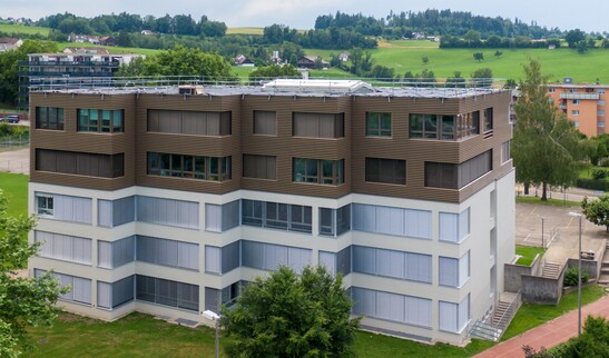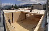 Das Gebäude wurde mit Massivholz Decken (CLT TS3) auf Aussenwände in Holzrahmenbau und Innenwände in Massivholz (CLT) aufgerichtet.