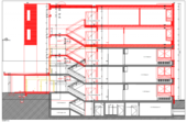 Da die oberste bestehende Betondecke nicht genügend stark war, um diese mit den geforderten 300 kg/m2 Nutzlast zu beanspruchen, musste auf diese eine Massivholzdecke, mit TS3 vergossen, aufgebracht werden. Somit werden alle neuen Lasten direkt auf die tragenden Elemente in den unteren Geschossen verteilt und die Betondecke wird nicht mehr belastet. Als zweite Herausforderung kam hinzu, dass die gesamten Bauarbeiten während laufendem Schulbetrieb stattfanden. Dank der Vorfabrikation des Holzbaus konnte der Rohbau der Aufstockung in 2 Wochen in den Sommerferien aufgerichtet werden.
