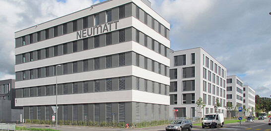Die Verwaltungsbauten wurden als Stahlbeton-Skelettbau erstellt. Für die Fassaden wurden Elemente in Holzrahmenbauweise vor das Tragwerk in Beton gesetzt. Der Auftrag an Timbatec war, geeignete Details zu entwickeln und die Statik für die Anschlüsse bei Geschossübergängen nachzuweisen.