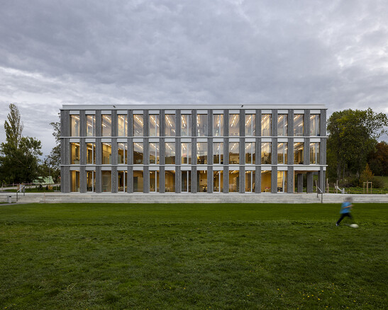 Actuellement 1159 tonnes de CO2 sont stockés dans la structure du nouveau bâtiment, comprenant au total environ 2800 m2 de locaux scolaires, parascolaires et de bureaux.