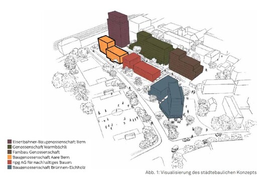 Afin de trouver des solutions pour un La ville de Berne a lancé en 2012 un concours d'urbanisme pour trouver des solutions. concours d'idées urbanistiques. Pour la construction par étapes de la zone, des projets de des solutions ont été trouvées par le biais de concours de projets pour les différents qui permettent d'atteindre les objectifs fixés par les directives et les règles du jeu. mettent en œuvre les objectifs.