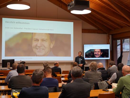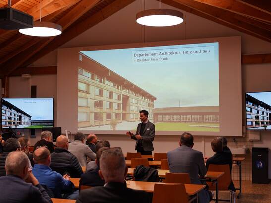 Erich von Siebenthal, conseiller national et président de Lignum Berne, a ouvert la manifestation. Il a été suivi par les discours de Sebastian Wörwag, recteur de la HESB, et de Peter Staub, directeur du département Architecture, bois et génie civil, qui ont mis en évidence les efforts déployés en faveur du développement durable.