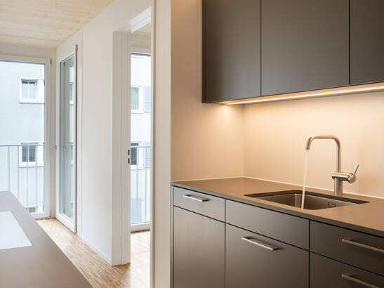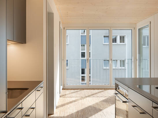 Les avantages écologiques de la construction en bois, en particulier pour la lutte contre le changement climatique, sont incontestés - l'utilisation du bois comme matériau de façade dans un contexte urbain est toutefois encore nouvelle et inhabituelle dans le projet de surélévation au Giessliweg. Il était important pour nous de montrer avec ce projet qu'une rénovation peut être bien plus qu'une simple optimisation de l'isolation thermique. Il est bien plus possible d'obtenir des améliorations durables en ce qui concerne l'utilité de l'espace habitable, la protection thermique estivale et l'écologie dans son ensemble.