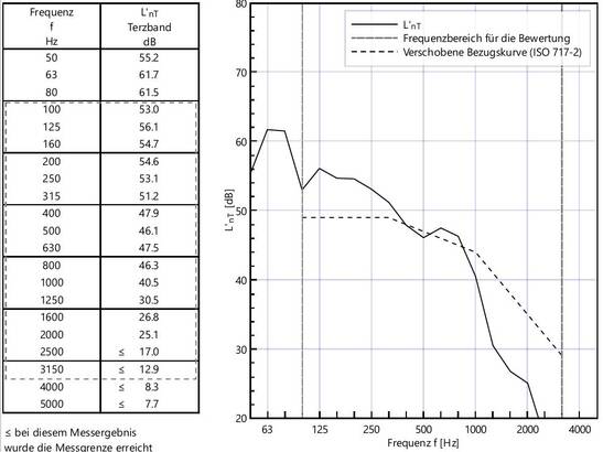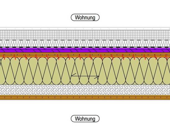 Les mesures acoustiques prouvent que les exigences accrues sont respectées dans ce bâtiment. Cela témoigne d'une part d'une bonne structure du plafond et d'autre part d'une exécution propre des travaux de construction. Lorsque des bâtiments présentent des bruits annulaires, cela est souvent dû à une mauvaise exécution. En effet, le son cherche son chemin à travers des joints non étanches, des moyens d'assemblage enfoncés trop profondément ou des bandes de réglage de chapes mal posées.