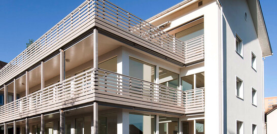 La base Dans le cadre d'une rénovation complète, des appartements ont été agrandis par une extension en bois. L'espace de vie avec véranda ainsi créé représente une valeur ajoutée pour les appartements du rez-de-chaussée et du 1er étage. Deux terrasses accueillantes ont été créées sur la nouvelle surface du toit plat et appartiennent aux appartements du 2e étage. Grâce à une nouvelle enveloppe extérieure préfabriquée, le bâtiment a été mis à niveau pour répondre à la norme Minergie-P.