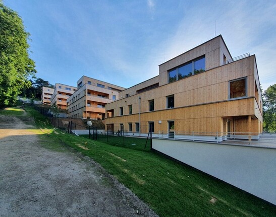 The non-profit building and community "Familienwohnbau" built 52 new housing units in Vienna Hernals. residential units. The settlement is not only characterized by its prime location on the edge of the on the edge of the Vienna Woods, it is also exemplary from the point of view of sustainability. High-quality fittings, the innovative energy supply and the clear commitment to wood as a material are commendable in the construction project.