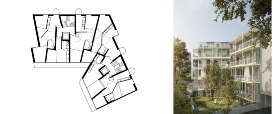 The The average living space per person in multi-family dwellings has risen continuously since 1960, while the supply of available building land has been declining. is declining. The supply of affordable housing is particularly scarce in urban centers. scarce. According to the Swiss Federal Statistical Office (SFSO), more than half of all households in 2020 of households will live in an apartment with more than two rooms per person. In Zurich one third of the single households and one-third of couple households, and only one in one in three apartments is occupied by a family or a multi-person household. The architectural firm Edelaar Mosayebi Inderbitzin is tackling the question of how high-quality high-quality living space can be offered in a small area.