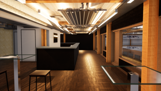 The consortium of architects Dolci Architects in Yverdon and Stähelin Partner in Delémont developed the arena. The visualization by Dolci Architects shows the future the future VIP box with its wooden supports and ceiling construction. can be seen.