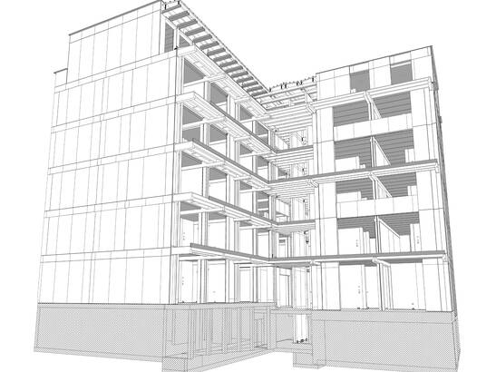 LysP8 is an architectural combination of a point building on the Volta Nord square, a long building along Lothringerstrasse and a connecting access structure. This combination creates individual facades and makes effective use of the space. The access scaffolding serves as a striking entrance and connects the various floors and living areas.