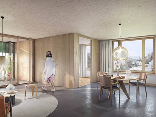 Particular attention will be paid to a design that is appropriate to the location and neighborhood as well as high-quality architecture. The interiors and facades should impress with high-quality materials, while the building services concept is based on modern, sustainably efficient solutions. In the interests of economical construction and cost-efficient operation, the project will be implemented in accordance with the Minergie®-P-Eco standards. Compatibility with the underground parking extension of the neighboring Du Lac retirement center will also be taken into account in order to ensure a seamless continuation of the construction work. The planned architecture attaches great importance to the mix of apartments and uses. The room sequences in a modular structure include apartment sizes of 2 ½, 3 ½, 4 ½ and 5 ½ apartments.