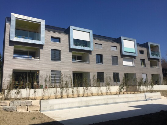 The "Hausgemeinschaft 2. Lebenshälfte Muttimatte" aims to enable people over 60 to live a community-oriented, self-determined and individual lifestyle. The residents of the settlement in Brügg near Biel should be able to live independently in their own living environment for as long as possible. The 27 apartments have 2.5 to 3.5 rooms and are between 46 m2 and 75 m2 in size. All areas are threshold-free and wheelchair-accessible.