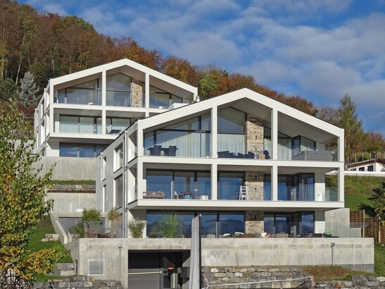 The Lee Side development in Faulensee near Spiez consists of two apartment buildings, each with three condominiums. The apartments have 3.5 to 5.5 rooms and are very generously equipped. All apartments offer an incomparable view of Lake Thun and the mountains of the Bernese Oberland. The large sliding glass doors contribute to the fact that the outside area practically merges with the interior. The jewel in the crown of each residential unit is the spacious, open-plan dining, cooking and living area, which flows seamlessly onto the balcony or into the garden.