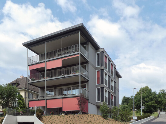 The apartment building in Küsnacht near Zurich was built to replace a house that was getting on in years. It is centrally located in the immediate vicinity of the Küsnacht-Goldbach train station and numerous stores, restaurants and banks. The building has four floors, each with a spacious apartment from whose terraces the residents can enjoy the view over Lake Zurich. The architects took care to ensure that the simple volume, with its classic tripartite division of base, middle section and roof projecting on all sides, fits in well with the structure of the existing neighborhood.