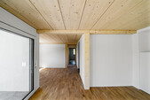 The planning of the project was a small family plan of the Timbatec employee. The architect in charge and the civil engineer are siblings of one of the employees. The building is built as a wooden structure from the floor slab. The solid wooden ceilings rest on the interior load-bearing axes and exterior walls. The cantilevered balconies were all constructed without columns. All beams and columns, as well as the ceilings, are visible and were treated with a UV protection with a light white content. Timbatec was responsible for the entire timber structural design, the detailed design and the fire protection design including quality assurance.