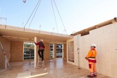 The cold temperatures during the casting of the CLT panels necessitated winter construction measures. For this purpose, the building was temporarily wrapped and heated. This ensured the necessary temperatures for casting and curing.