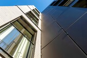 The apartment building in Dübendorf has a basement in reinforced concrete and 5 floors above in wood with a wooden staircase. There are a total of 5 apartments in the building on the ground and upper floors. The basement only contains cellars and technical rooms. The facade is partly covered with PV modules and horizontal timber cladding.