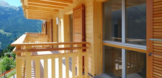 Chalet Schwarzbirg is located on steep terrain in Wengen in the Bernese Oberland. The apartment building consists of a massive basement and 3 full floors above ground in timber construction.