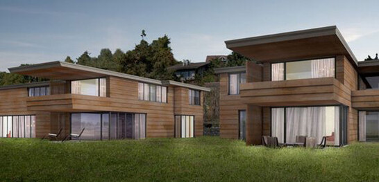 Three multi-family houses with four residential units each were built here. The individual buildings of this development have two full floors above ground level realized in solid construction. The special features: In this property, the focus is on the cantilevered components, such as balconies, canopies and facade cladding, which were constructed in wood.