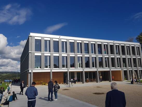 In den nächsten zehn Jahren braucht es Schulhäuser für rund 3000 zusätzliche Schulklassen. Diese werden vorzugsweise mit regionalem Holz erstellt. Ein gutes Beispiel dafür entstand in Prêles auf dem Plateau de Diesse oberhalb des Bielersees. Am 22. September wurde die neue Schulanlage offiziell eröffnet.