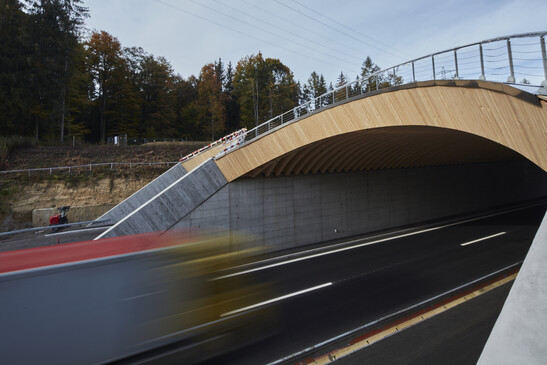 Rund 70’000 Fahrzeuge passieren täglich die Wildtierbrücke aus Holz