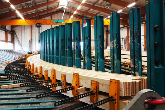 Herstellung des Brettschichtholzes bei der Firma Hüsser Leimbau AG