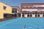 Gebaut wurden ein zweigeschossiger Kindergarten und ein neues Schulhaus mit drei Geschossen. In beiden neuen Gebäuden dominiert der natürliche Baustoff Holz, der sich bekanntlich positiv auf die Lernatmosphäre auswirkt. Die Baukörper wurden als sehr kompakte Volumen geplant.