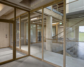 Ausgeführt ist das Bauwerk nach einem Pfosten-Träger-Prinzip. Die tragenden Elemente sind vollständig aus Holz gefertigt, einschliesslich der Kerne der vertikalen Zirkulationen, die aus gekapselten CLT-Platten bestehen. Eine Holz/Holz-Rippendecke, ergänzt durch eine Beschwerungsschicht, die eine teilweise Integration der Haustechnik ermöglicht, bietet eine schnelle Ausführung und erfüllt die Anforderungen an den Schallschutz perfekt.