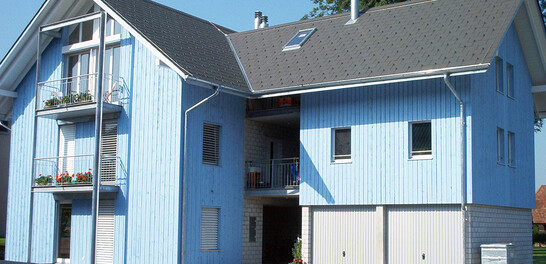 Das Objekt liegt direkt neben einer Sägerei. Bei einer ersten Anfrage war lediglich ein Dachstuhl in Holz gefragt. Später entschied sich die Bauherrschaft, einen modernen, mehrgeschossigen Holzbau zu errichten.