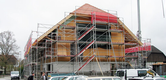 Beim Auspacken des Wohnteils wurde dann festgestellt, dass das Tragwerk nicht mehr funktionstüchtig ist. So wurde auch dieser Teil bis auf die Decke über dem EG rück- und in Holz-Elementbauweise neu aufgebaut. Als besondere Herausforderung galt es, die neu zu erstellenden Teile als Elementbau in die zum Teil uneben verlaufenden bestehenden Teile einzufügen. Im neu erstellten Gebäude wurden 5 Wohnungen mit je 4 ½ Zimmern erstellt.