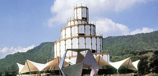Die Anforderungen waren hoch! Als Nutzlast wurde z.B. auf allen Geschossen 400 kg/m² gefordert. Die gewünschten 50 m Höhe waren nur mit zusammengesetzten Baumstämmen zu erreichen. Hinzu kam eine 5 m breite Rampe, die sich spiralförmig 330 m lang um den Turm wand. Der Rohstoff: 2‘000 m³ Rundholz*. Trotz sehr wenig Zeit, nur knappen 3 Monaten, wurde der Turm termingerecht zum Ausstellungsbeginn fertiggestellt. Er wurde während 6 Monaten genutzt und anschliessend abgebaut.