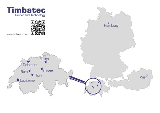 Mit unseren acht Standorten betreuen wir Kunden und Bauprojekte aus nächster Nähe. Timbatec legt grossen Wert auf ideale Standorte. Darum finden Sie unsere Büros jeweils in unmittelbarer Bahnhofsnähe. Wir freuen uns auf Ihren Besuch in Zürich, Bern, Thun, Delémont, Luzern, Lausanne sowie in Wien und Hamburg.