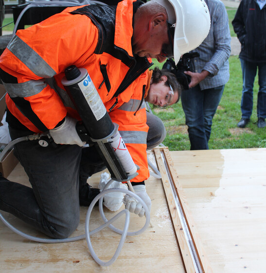TS3 permet de coller des éléments de construction en bois massif, lamellé-collé ou