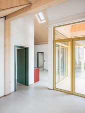 La ferme existante transformée abrite désormais la salle polyvalente ainsi que la bibliothèque. Le centre de santé est une construction à ossature en bois avec un plafond à poutres apparentes, la cage d'escalier est en béton. Les immeubles collectifs sont des constructions purement en bois et sont desservis par une coursive. La construction à éléments en bois est composée de plafonds en bois massif. De même, les maisons individuelles mitoyennes sont une construction à éléments en bois avec un plafond à poutres apparentes.