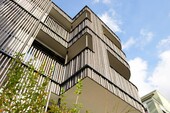 L'immeuble collectif possède un sous-sol avec un garage souterrain, des locaux techniques et des caves en béton armé. Au-dessus, il y a 4 étages en construction purement en bois avec une cage d'escalier en bois et un contreventement du bâtiment. La façade est constituée d'un bardage bois vertical et pourvue de tabliers pour la protection incendie.