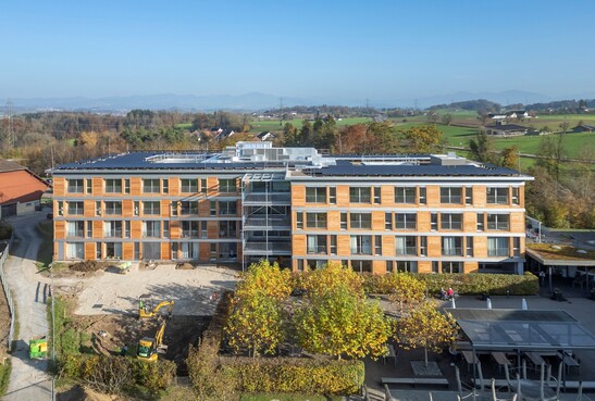 Pour cette surélévation de deux étages, Timbatec a pris en charge les prestations relatives à la protection contre l'incendie, à la statique des structures en bois et à la physique du bâtiment. Les exigences liées à ce projet de construction étaient multiples et ambitieuses : l'utilisation de la technologie TS3, des solutions de protection incendie avec des plafonds et des murs en bois lamellé-collé encapsulés, ainsi que la concrétisation du souhait du maître d'ouvrage de s'approvisionner en bois (environ 2 000 m3) dans les forêts des communes environnantes de Küsnacht, Erlenbach, Herrliberg et Egg. Cela a nécessité un appel d'offres en trois parties pour l'exploitation forestière (approvisionnement en bois), l'industrie du bois (sciage et transformation) ainsi que pour le constructeur en bois – une collaboration alliant technique, logistique et ancrage régional.