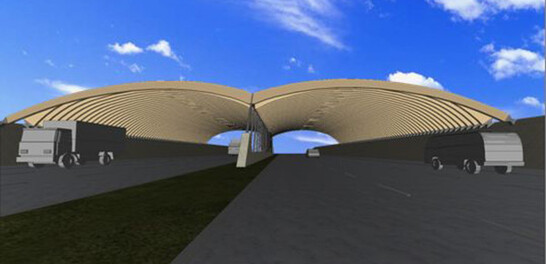 La charge due aux importantes surcharges de terre, les grandes forces d'impact et la protection constructive du bois ont posé des exigences élevées à la structure porteuse. La construction du pont près de l'A1 se compose d'arcs en bois lamellé-collé qui enjambent l'autoroute en une double arche. Une forme d'arc optimisée réduit les efforts de coupe et donc l'utilisation de matériaux à un minimum.