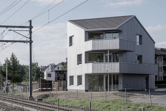 Cet immeuble collectif de trois étages était initialement prévu dans sa totalité en construction massive. Aujourd'hui, le maître d'ouvrage se réjouit d'un bâtiment qui combine les avantages de la construction en bois et de la construction massive : la maison offre une atmosphère agréable, a une faible empreinte écologique, une grande flexibilité d'utilisation et a pu être réalisée rapidement et dans le respect du budget prévu.