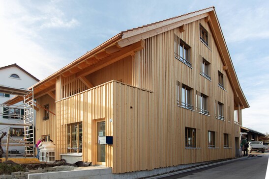 Une grange située à Ottenhausen a été remplacée par une nouvelle construction. Le bâtiment existant était classé au titre de la protection du site. Pour la nouvelle construction, il a donc fallu reprendre les dimensions et l'apparence (matériaux) de l'ancien bâtiment. Le maître d'ouvrage a fait abattre du bois de lune dans sa propre forêt afin de construire une maison en bois massif pour sa famille et trois autres. À l'instar de la grange, la maison dispose de plusieurs accès. Chaque appartement dispose d'un accès extérieur séparé. Les hauteurs sous plafond varient d'un appartement à l'autre. Il s'agit là encore d'un clin d'œil à la grange, dont les hauteurs sous plafond étaient adaptées à son usage. Ainsi, dans le nouveau bâtiment, les pièces à vivre et les salles à manger sont plus hautes que d'habitude.