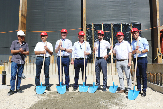 With this ceremony will mark the official start of the works that will lead to the renovation of the existing ice rink by October 2020 and the construction of a complex to create a second second ice rink in the fall of 2021. The new Raiffeisen Arena with 4,650 seats will be the home rink of ice hockey B league team HC Ajoie. The ice fields will also be used by the curling club, figure skaters and the public. and the public. Also the aspiring national ice hockey teams will train and play in Porrentruy. Not least for this reason was the director of the Federal Office of Sport Matthias Remund was present at the laying of the foundation stone.