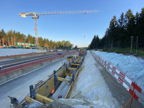 In the The next step will be to install the wooden beams to cover the second carriageway. installed. For the installation of the timber beams traffic routing will have to be changed at night. From the end of March 2021 until presumably mid-May 2021, traffic will be routed in one lane traffic will be directed in one lane at night.